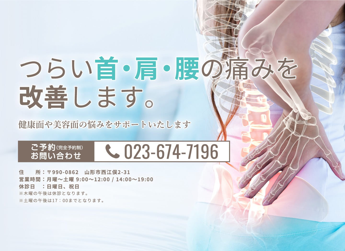 お身体の不調や疲れや美容のお悩みなどのご相談、ご予約、心よりお待ちしております。